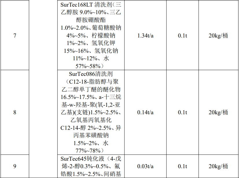 原辅材料消耗表