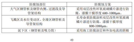 海上风机基础耸立于海洋环境中,所处环境腐蚀性较强为强电解质,且受波 浪、水流等环境影响,海水表面供氧充分,腐蚀问题突出。海上风机基础应针对 不同的防腐分区采用对应的防腐蚀措施。