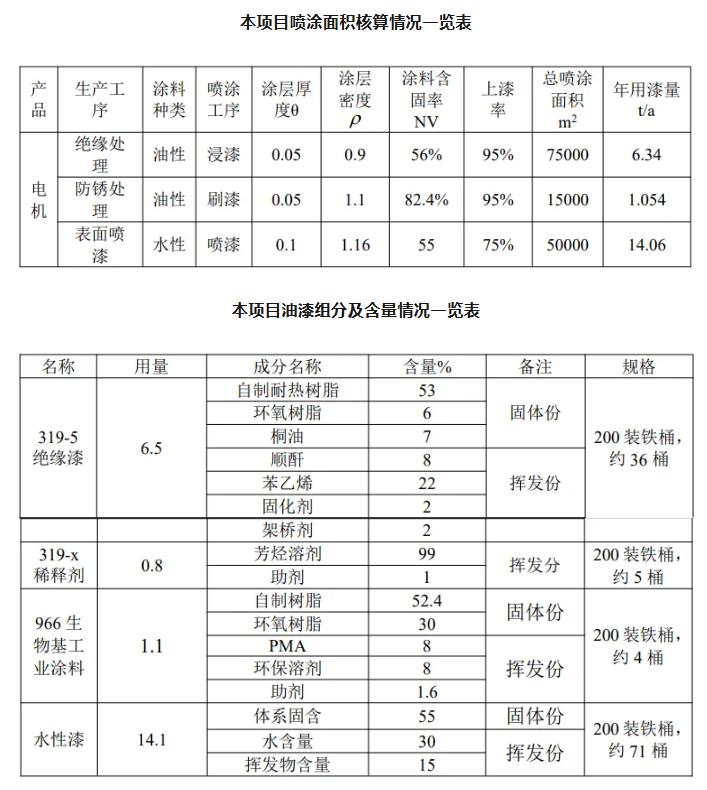 1.054吨、水性漆用量为14.06t/a,与建设单位提供的319-5绝缘漆6.5吨、319-x稀释剂 0.8吨966生物基工业涂料1.1吨、水性漆用量为14.1t/a, 基本相符。