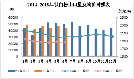 综合当前市场情况,去年7月份是全年钛白粉出口量最高的月份,但今年7月份面临极大压力,预计7月份出口环比尤其同比跌幅将会继续扩大,所以,国内钛白粉市场后期仍难以从出口当中获得正能量,价格面仍将承受较大压力,预计国内钛白粉价格至少在8月份仍存在继续下跌的空间。