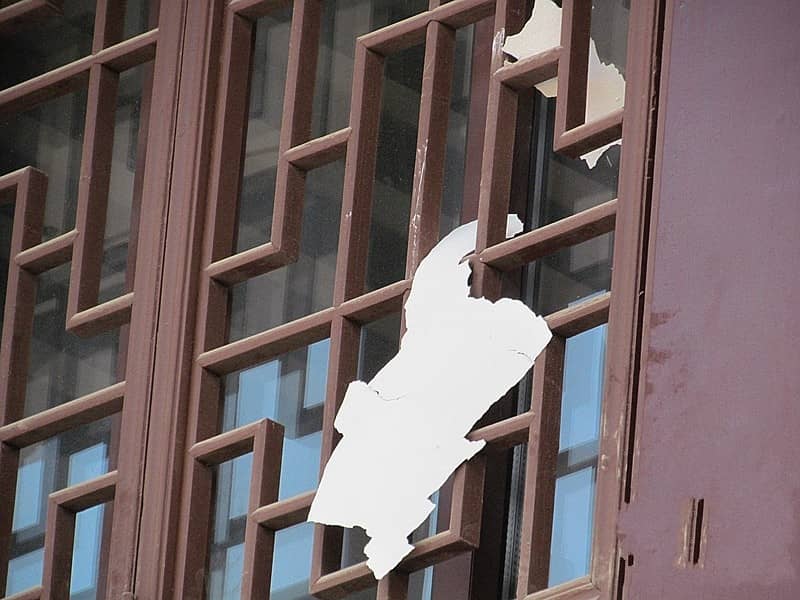 笔者看到,屋檐下有几平方米的面积,大约有几处白色墙皮脱落,花窗上,门头瓦檐上到处都是,风一刮就“纷纷”飘落,像“雪花纷飞”,落在地上,一踩就碎。游客说:怎么会这样呢?夫子庙是南京的5A风景区,慕名而来的游客络绎不绝,如此景象大煞风景。