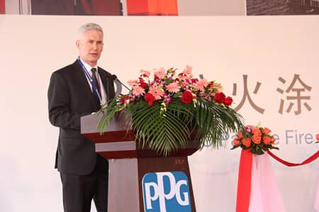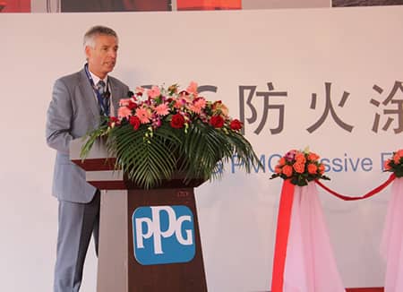 【中国涂料采购网】2014年9月25日,中国昆山——今天,PPG工业公司(纽约证交所代码:PPG)防火涂料研发中心启用仪式于PPG昆山工厂内隆重举行。PPG工业防护及船舶涂料全球副总裁Tim Knavish、PPG亚太区总裁Mike Horton、PPG防护涂料亚太区总监Colin Tan等多位PPG领导及嘉宾出席了此次仪式。