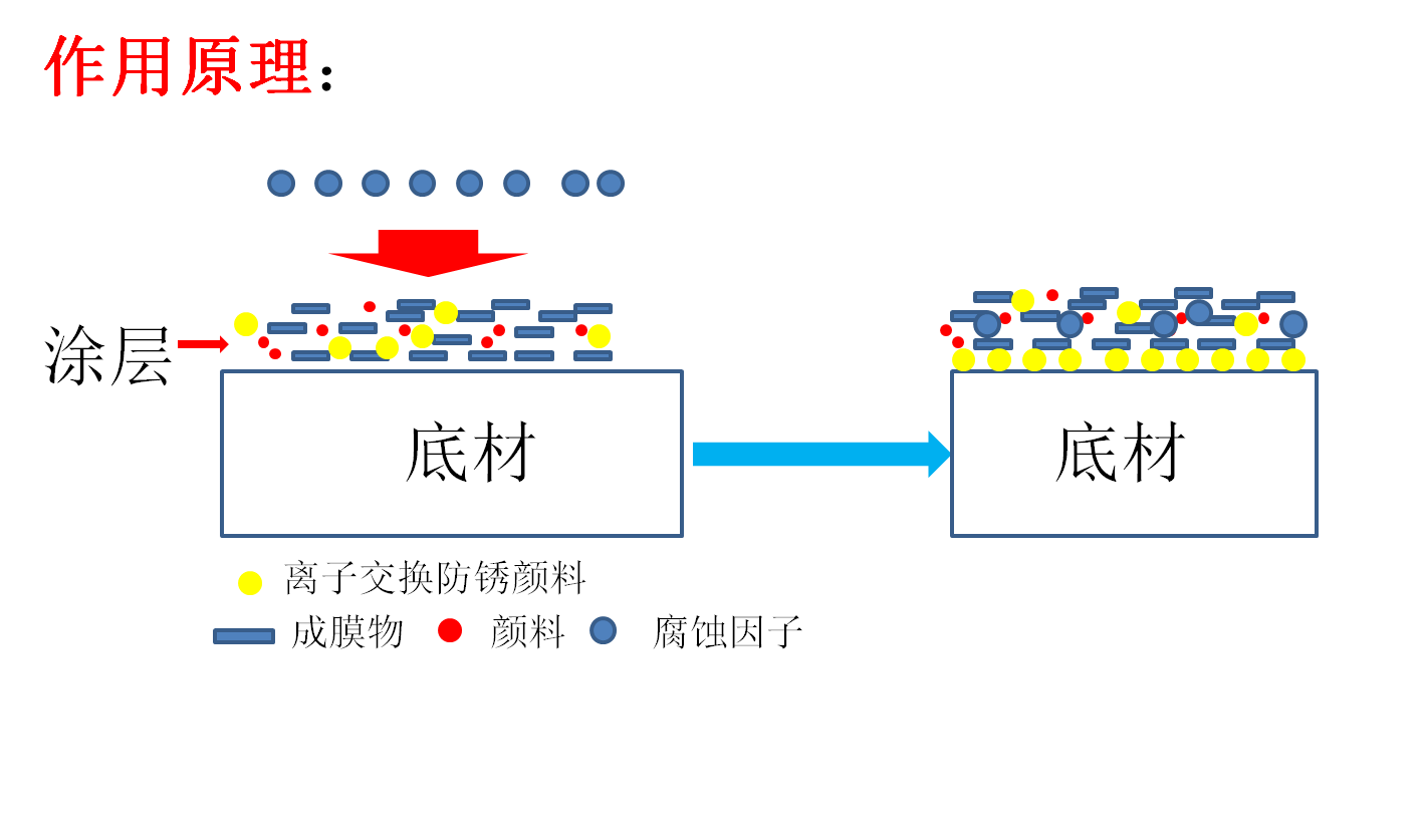 立钛粉是一种改性离子交换型硅胶防锈颜料是利用腐蚀性电解质进入涂膜时,即与该防锈颜料接触,颜料就将这种腐蚀性离子截获在二氧化硅表面上,并释放出相应的钙离子转移到金属底材上,当此过程持续进行时,则钙离子层就堆积在金属与涂层的界面上,从而起着阻隔作用而保护了底材,又增强了涂层的附着力,使涂料的防腐性能大大增强。