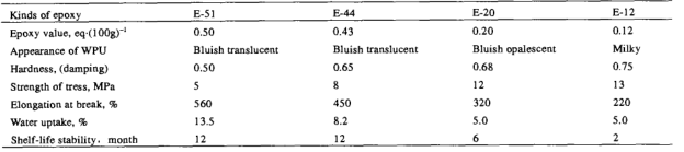 T ab le 1 T h e ef f ect of th e kin d of epo xy on the prop erties of W P U