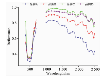 (1)在可见光区域不同品牌之间的光谱差异较小,而在近红外区域,四个品牌涂料的光谱差异较大,表明肉眼难以判别不同品牌涂料之间的差异,然而在近红外波段是可以区分不同品牌涂料的。