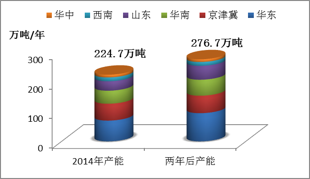 图1 2014-2016年丙烯酸乳液扩能数据统计