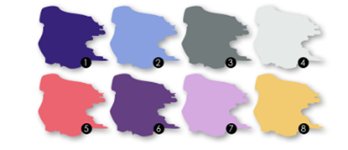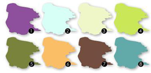 1.BA7000-1蝶恋花2.BC0025-2湖蓝之意3.NN6540-2忧郁4.NN7308-4雨季天空 5.RC8030-2锦红菱6.VC0029-1紫青7.VC0039-3浓郁紫罗兰8.YN0036-2撒哈拉